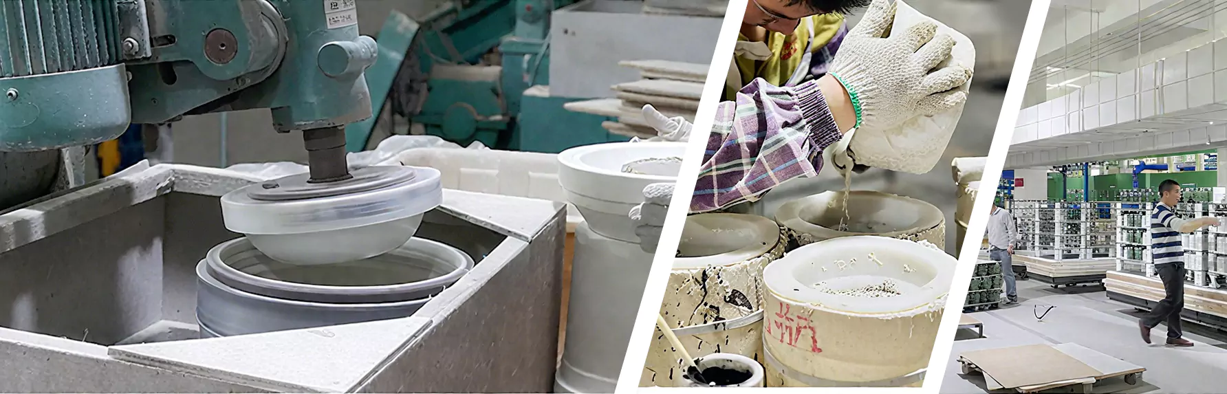 Nossa principal fábrica de Fujian é especializada em utensílios de mesa de cerâmica de alta qualidade, incluindo canecas (café e xícaras de chá) e castiçais. Fujian é um centro para artesanato em cerâmica. Nossa fábrica possui linhas de produção de ponta e processos certificados iso, garantindo meticulosamente a precisão na modelagem, vidros e disparos, garantindo produtos funcionais e esteticamente agradáveis.