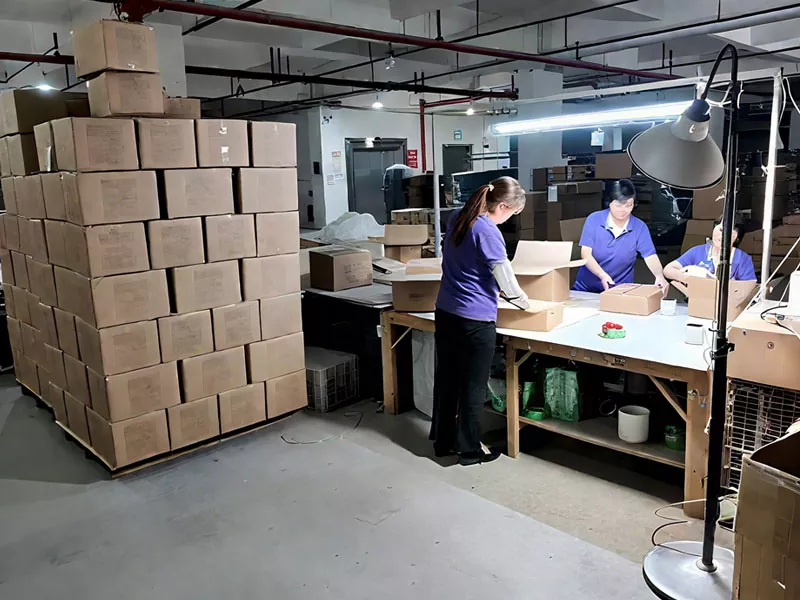 Para facilitar a embalagem e o transporte, estabelecemos nosso próprio centro de embalagens perto de nossa sede em Dongguan. Este centro é especializado em soluções de embalagem para itens frágeis, como velocistas de vidro e difusores. Podemos criar caixas e revestimentos personalizados e usamos materiais ecológicos para proteger itens como difusores de vidro e cerâmica decorativa, garantindo sua segurança durante o transporte.