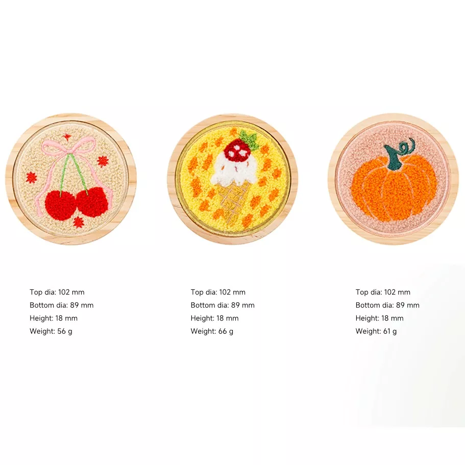 Nossas lindas tampas de madeira ecológicas feitas à mão são criadas por peça usando a técnica de bordado. Eles apresentam uma grande variedade de designs, cada um vívido e realista - você será mimado pela escolha. O padrão de cereja é vibrante e adorável em rosa e vermelho, quase doce apenas olhando para ele. O padrão de sorvete, com sua vibrante combinação amarela e branca, é limpa e refrescante, trazendo uma frieza semelhante ao verão. A tampa da abóbora é uma laranja vibrante, incorporando o calor do outono. Os sotaques vibrantes e azuis vibrantes da tampa do donut são animados e doces. O padrão de coquetel é um rosa romântico, bastante cativante. O padrão de limão, com seus amarelos brilhantes e notas de verde, exala uma vibração vibrante, azeda e doce.