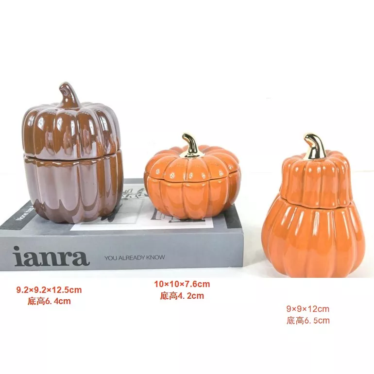 Esses ornamentos podem ser usados ​​como ornamentos decorativos e potes de vela, potes de armazenamento, potes de doces e potes de chá. Seu design hermético é perfeito para armazenar produtos secos. Eles são perfeitos para armazenamento decorativo em cozinhas, salas de jantar ou entradas de sala de estar. A forma de abóbora evoca temas de outono e halloween, e eles também podem ser usados ​​como móveis para casa, injetando uma atmosfera natural, rústica e sofisticada em qualquer espaço. Eles são práticos e decorativos.